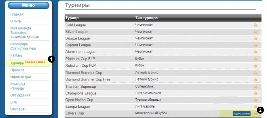 Чемпионаты, в которых ты можешь принять участие прямо сейчас, отмечены значком «Подача заявок».