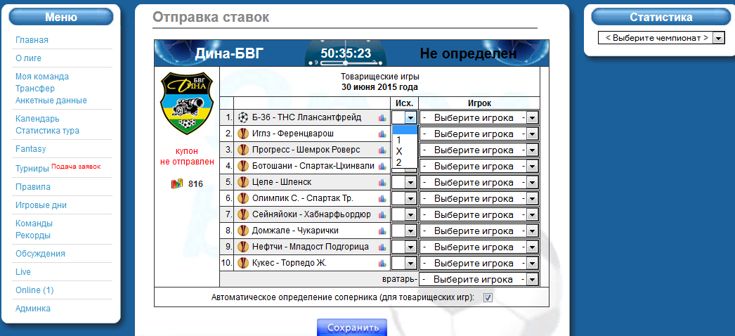 2. Изучай статистику выступления команд и делай ставки на матчи купона!